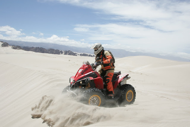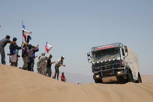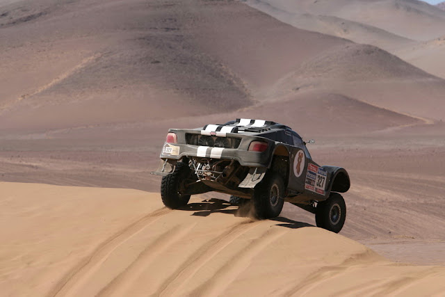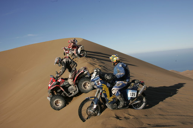 Nella foto in alto David Fretigne supera una duna nel deserto cileno tra Iquique e Antofiagasta (© ASO Press).